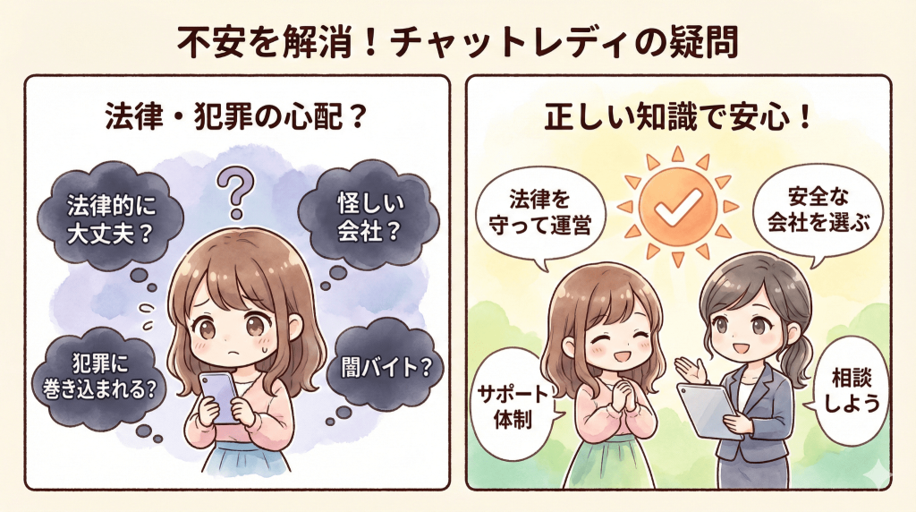 「チャットレディって、法律的に大丈夫なの?」 「怪しい会社に騙されて、犯罪に巻き込まれたりしない?」